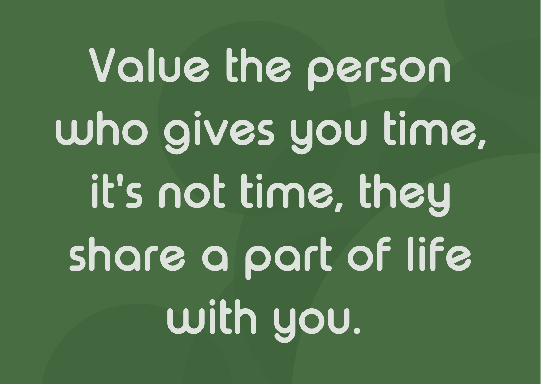 It is easy to take people for granted when they are around us all of the time, don't forget to appreciate the time and life that people choose to share with you.